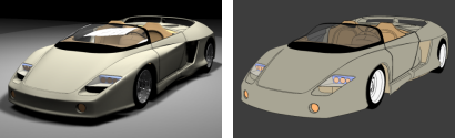 Iluminación de escena (izquierda), Sin iluminación (derecha).