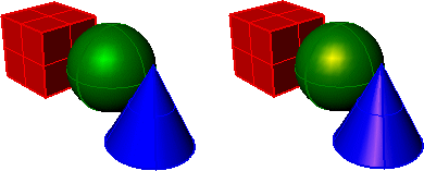El color de brillo es igual al color del objeto (izquierda) y el color de brillo es naranja (derecha).