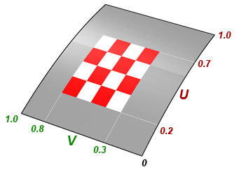 El mapeado UV utiliza la parametrización U y V de la superficie para curvar y estirar la textura.