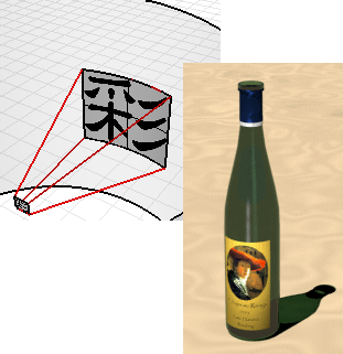 Utilice el mapeado Cilíndrico para colocar calcomanías en objetos que se curvan hacia una dirección, como las etiquetas en botellas de vino.