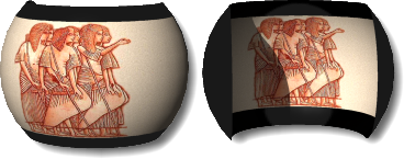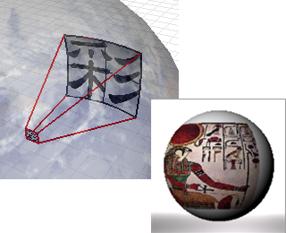 Si está utilizando el mapeado plano en un objeto curvado, toda la textura debe estar situado detrás de la superficie del objeto. Las partes de la textura que estén delante de la superficie no serán visibles.