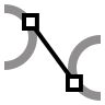 Dibuja un segmento de línea tangente a dos curvas.