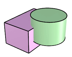 두 서피스가 동일한 영역을 공유할 때 겹쳐 있는 서피스가 발생합니다. 예를 들어, 두 개의 상자가 한 면에서 서로 접하고 있는 경우, 개체의 합집함, 차집합, 교집합은 실행되지 않습니다.