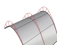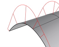 - 서피스에서 곡률의 세선은 서피스의 아이소커브에서만 표시됩니다. 아이소커브 표시가 꺼져 있으면, 서피스의 경계에서만 곡률의 세선이 표시됩니다.