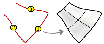 The EdgeSrf command creates a surface from two, three, or four selected curves. The edges of the created surface can precisely match the input curves.